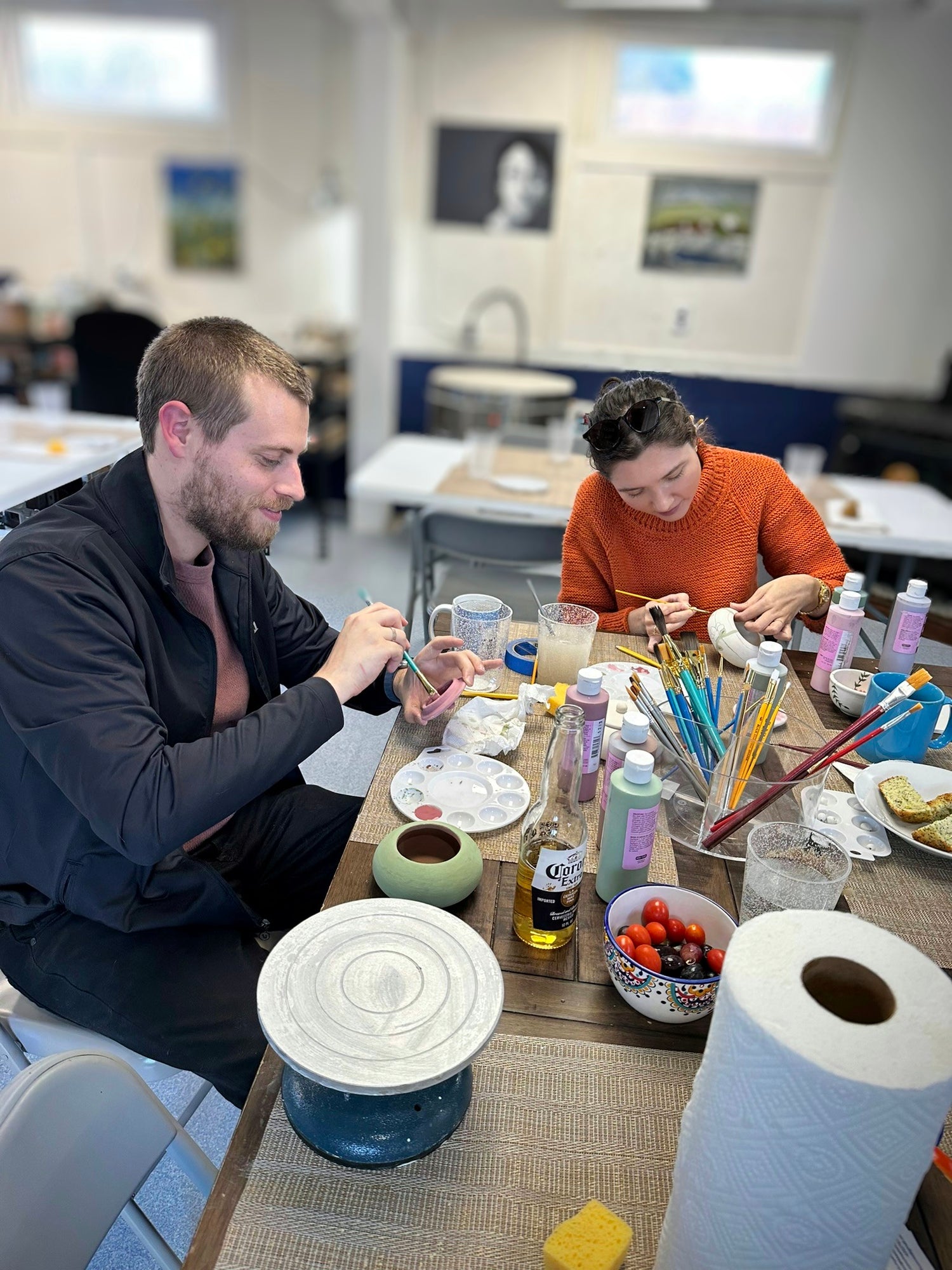 We are proud to be a locally owned and operated small business, working each day to make our dreams come true. We are Connie and Chris, and we built this studio up ourselves! Connie was born and raised in Chile, where she learned to paint bisque pottery pieces and quickly fell in love with the art of ceramics. Her background is as a teacher, and her dream has always been to create a space where others could learn to love ceramic art the way she did. Connie is our painter and designer, coming up with each of our designs and hand-painting every piece. Chris is a Washington native, and has always loved working with his hands and taking on new projects. His background is in construction, and he dreams of continuing to shape the studio into a bigger and better space. Chris is our builder, working with clay to hand-build pottery pieces.